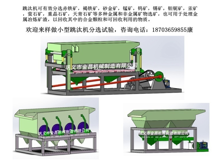 您可能對(duì)跳汰機(jī)分選石榴石有著諸多的疑慮,這些疑慮是可以通過實(shí)驗(yàn)的方式幫您解決的,鞏義市金昌機(jī)械有小型實(shí)驗(yàn)用跳汰機(jī),歡迎來樣實(shí)驗(yàn)礦石,看看到底能選到哪種程度,選出的產(chǎn)品您可以拿到市場(chǎng)上了解一下價(jià)值,如果各方面都是有利潤(rùn)的情況下,您就可以購(gòu)買設(shè)備進(jìn)行投資,這是一條比較穩(wěn)妥的生意,歡迎咨詢鞏義市金昌機(jī)械制造有限公司。