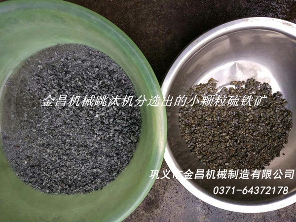跳汰機(jī)分選硫鐵礦更環(huán)保,因?yàn)樘瓩C(jī)使用水為介質(zhì),水中不添加任何藥劑,并且還是循環(huán)用水,所以更加環(huán)保,再一點(diǎn)跳汰機(jī)處理硫鐵礦更加高效,像AM30跳汰機(jī)每小時(shí)可以處理15噸左右,而小型AM30跳汰機(jī)每小時(shí)可以處理5噸左右,兩種跳汰機(jī)處理的效果都是非常不錯(cuò)的,當(dāng)然這兩種跳汰機(jī)是處理大顆粒硫鐵礦的跳汰機(jī),處理小顆粒硫鐵礦的跳汰機(jī)型號(hào)有LTA系列和2LTC6109/8T跳汰機(jī),這兩種跳汰機(jī)效果都非常出色,下邊是金昌機(jī)械為銅陵客戶做的小顆粒硫鐵礦分選實(shí)驗(yàn),實(shí)驗(yàn)效果還是非常明顯的,金昌機(jī)械歡迎來樣實(shí)驗(yàn)礦石,實(shí)驗(yàn)滿意后再購(gòu)買設(shè)備,詳詢1870 365 9855康。