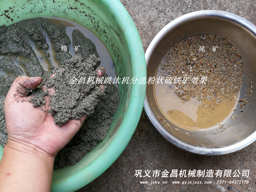 近段時間,安徽銅陵的客戶到我單位做小型跳汰機(jī)選礦實驗,客戶帶的是粉狀硫鐵礦,里邊含泥量是很大的,但是泥土沒有任何的粘性,這也是客戶篩分好的顆粒,我們可以用跳汰機(jī)直接進(jìn)行分選,起初客戶對跳汰機(jī)是比較懷疑的態(tài)度,認(rèn)為跳汰機(jī)分選這種硫鐵礦效果達(dá)不到搖床的質(zhì)量,但是經(jīng)過我們對跳汰機(jī)的調(diào)節(jié),最終選出了合格的精礦和尾礦,客戶對此也是非常滿意的。